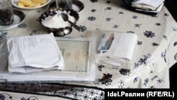 Женщина достает пачку документов. Там паспорта, страховые и медицинские полисы, свидетельства о рождении. Она открывает несколько паспортов и показывает их нам.