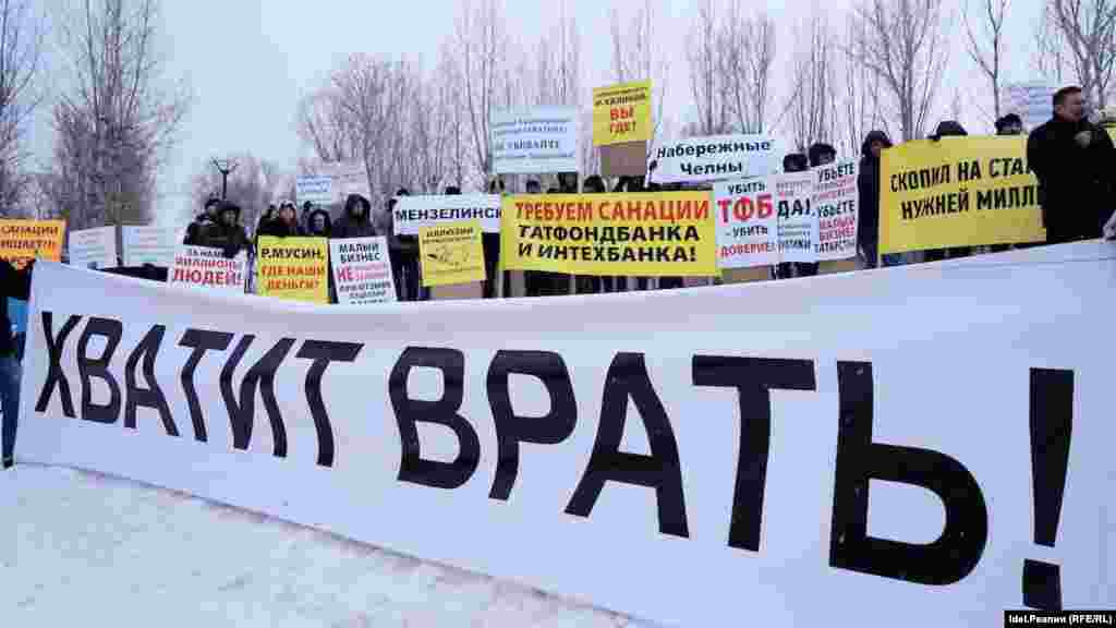 21 января вкладчики Татфондбанка организовали митинг в столице Татарстана, где потребовали санации банка.